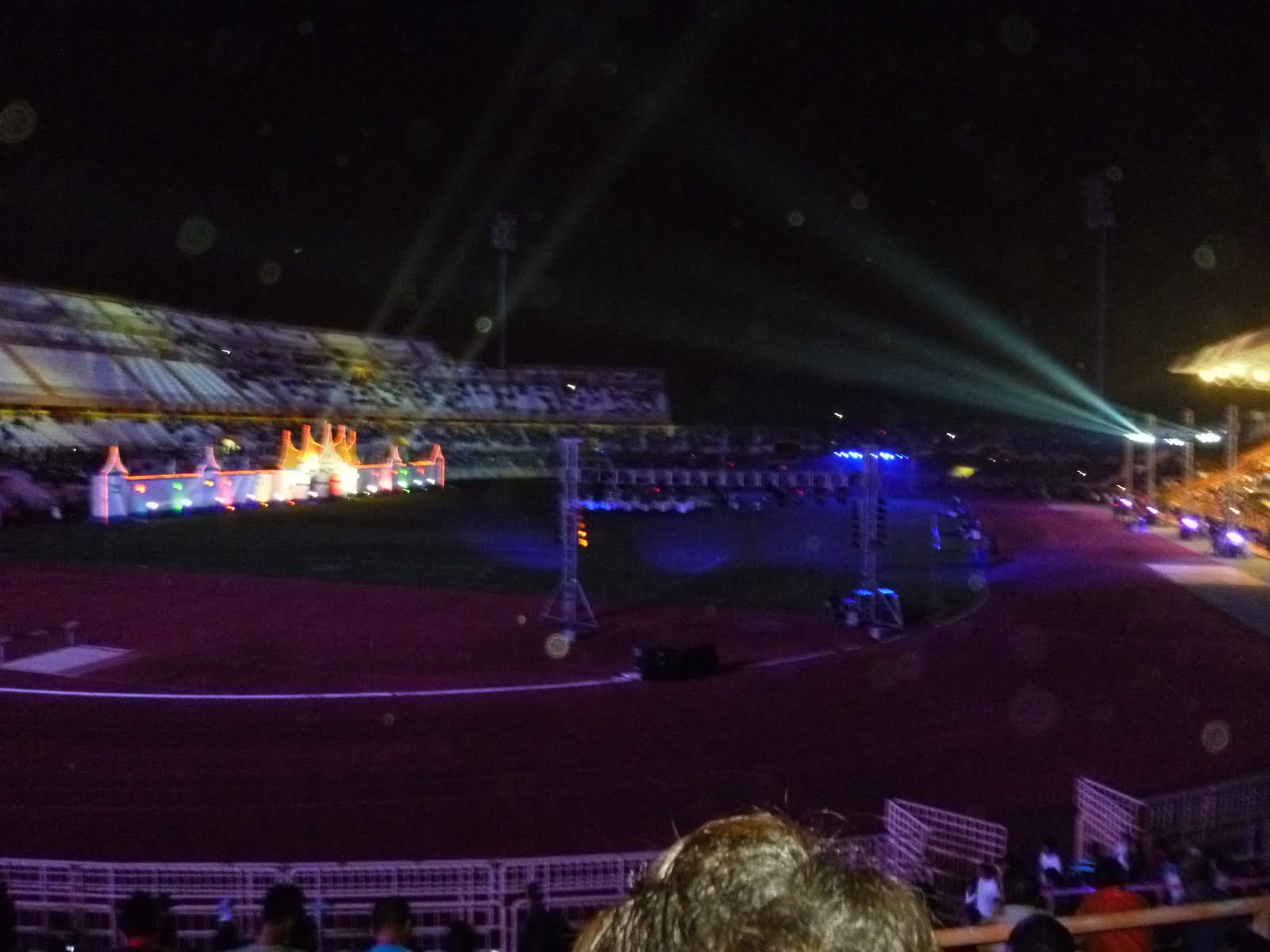 | Keadaan agak samar-samar sebab lampu stadium tidak buka , yang hanya ada lampu bling-bling yang comel tuu -.- |